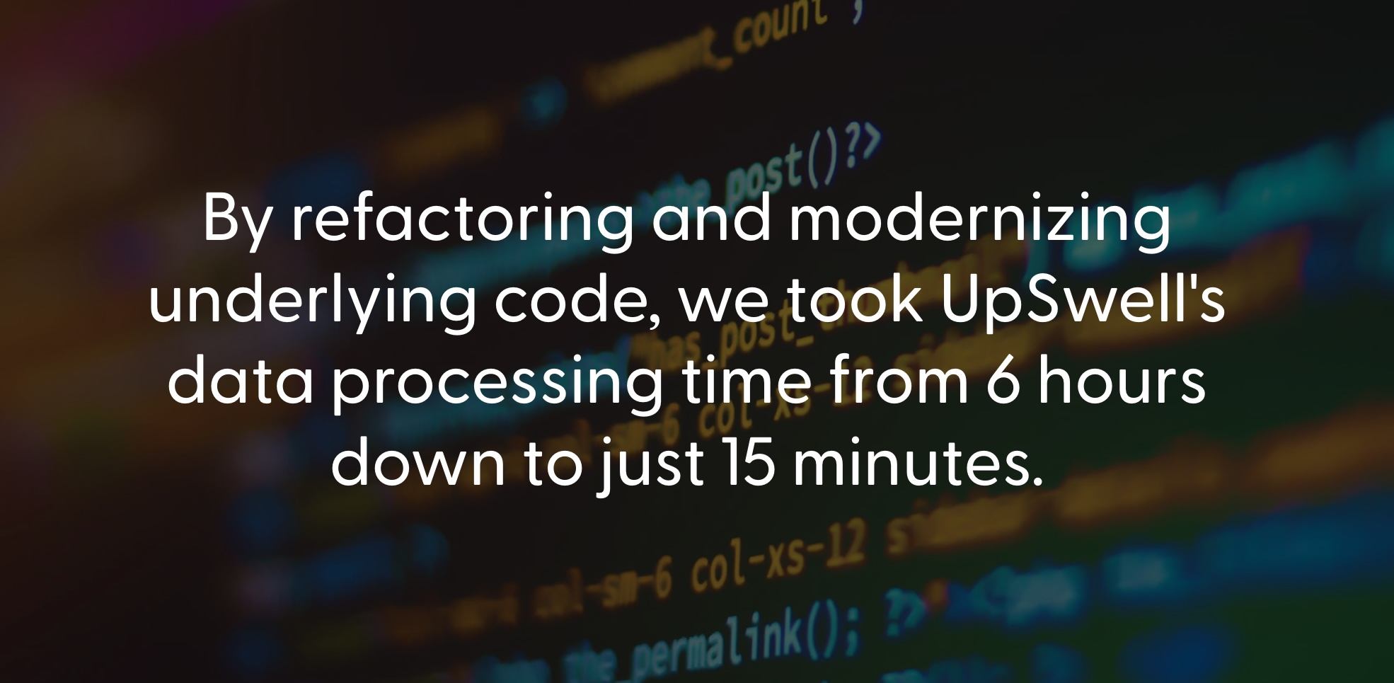 The result? UpSwell could handle significantly more volume without proportionally increasing its headcount. We did this by optimizing slow-running jobs and writing SQL stored procedures to reduce processing time for 1 million records from 6 hours to under 20 minutes. This speed improvement meant Upswell could process orders more quickly and continue to scale their print operations. More importantly, their team was energized by more meaningful work, their customers received better service, and their margins improved dramatically.