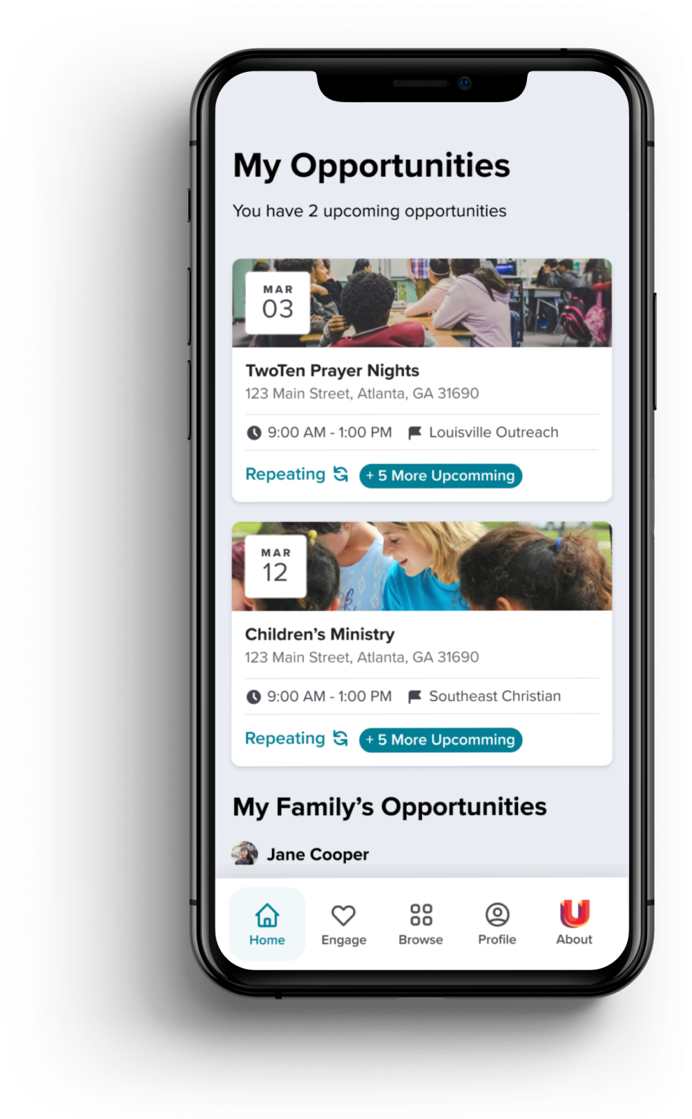 Southeast partners with over 50 local nonprofits that are serving their city. The problem was how to engage and connect their 25,000+ weekly attendees to serve with these partners to make an impact in their community. Southeast needed a way for their partners to post opportunities and aggregate those opportunities for their members to participate.