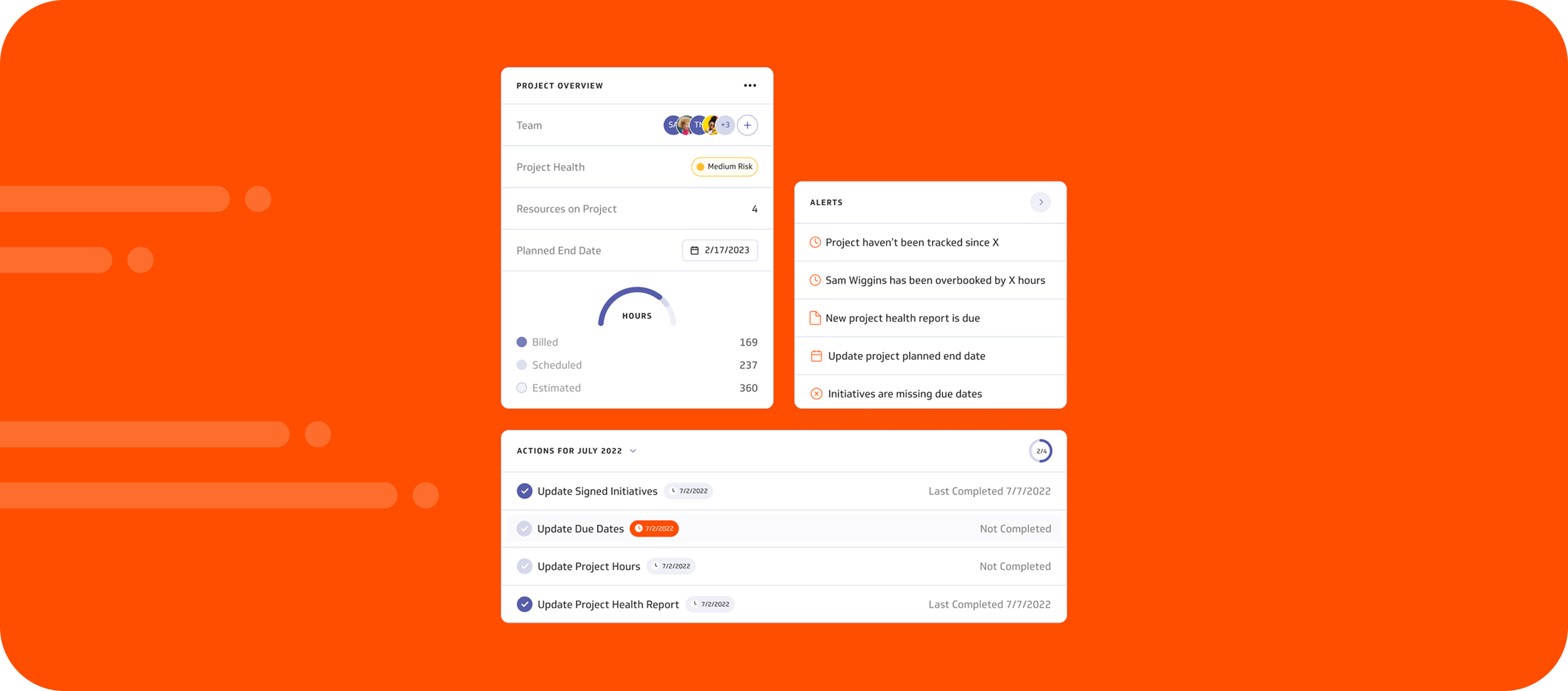 We not only surfaced this information by created visualizations to make it easy for project leads to digest and act on the information. Similarly, for project health reports we surfaced up-to-date information about each project so project leads could provide accurate assessments and give qualitative updates based on the quantitative data.